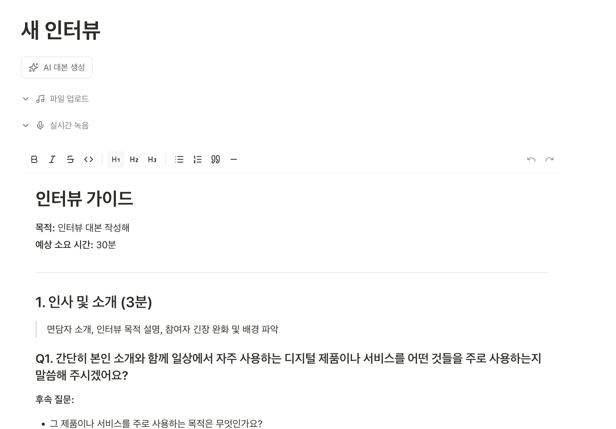 ํผ๋๋ฐฑ์ ์์งํ๋ ์๋ก์ด ๋ฐฉ์์ด ์๊ฒผ์ต๋๋ค. ์ด์ ์ฌ์ธต์ ์ธ ์ธํฐ๋ทฐ๋ฅผ ์ฝ๊ฒ ์งํํด๋ณด์ธ์.๋ค์ํ ์ค๋ฅ ์์ ๋ฐ ์์ ํ ์์