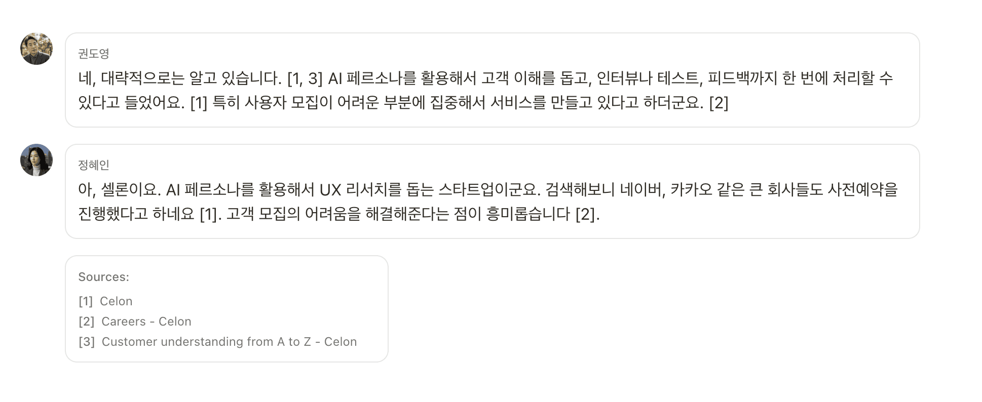 ๊ณ ๊ฐ์ ๋ํด ๊ถ๊ธํ ์ ์ ์์ฐ์ด๋ก ์ง๋ฌธํ๋ฉด ์์ง๋ ๋ฐ์ดํฐ๋ฅผ ๊ธฐ๋ฐ์ผ๋ก ์ฆ์ ๋ต๋ณ์ ๋ฐ์ ์ ์์ต๋๋ค.ํผ๋๋ฐฑ, ์ธํฐ๋ทฐ, ํ ์คํธ ๊ฒฐ๊ณผ ๋ฑ ๋ชจ๋ ๋ฐ์ดํฐ๋ฅผ ํตํฉ ๊ฒ์